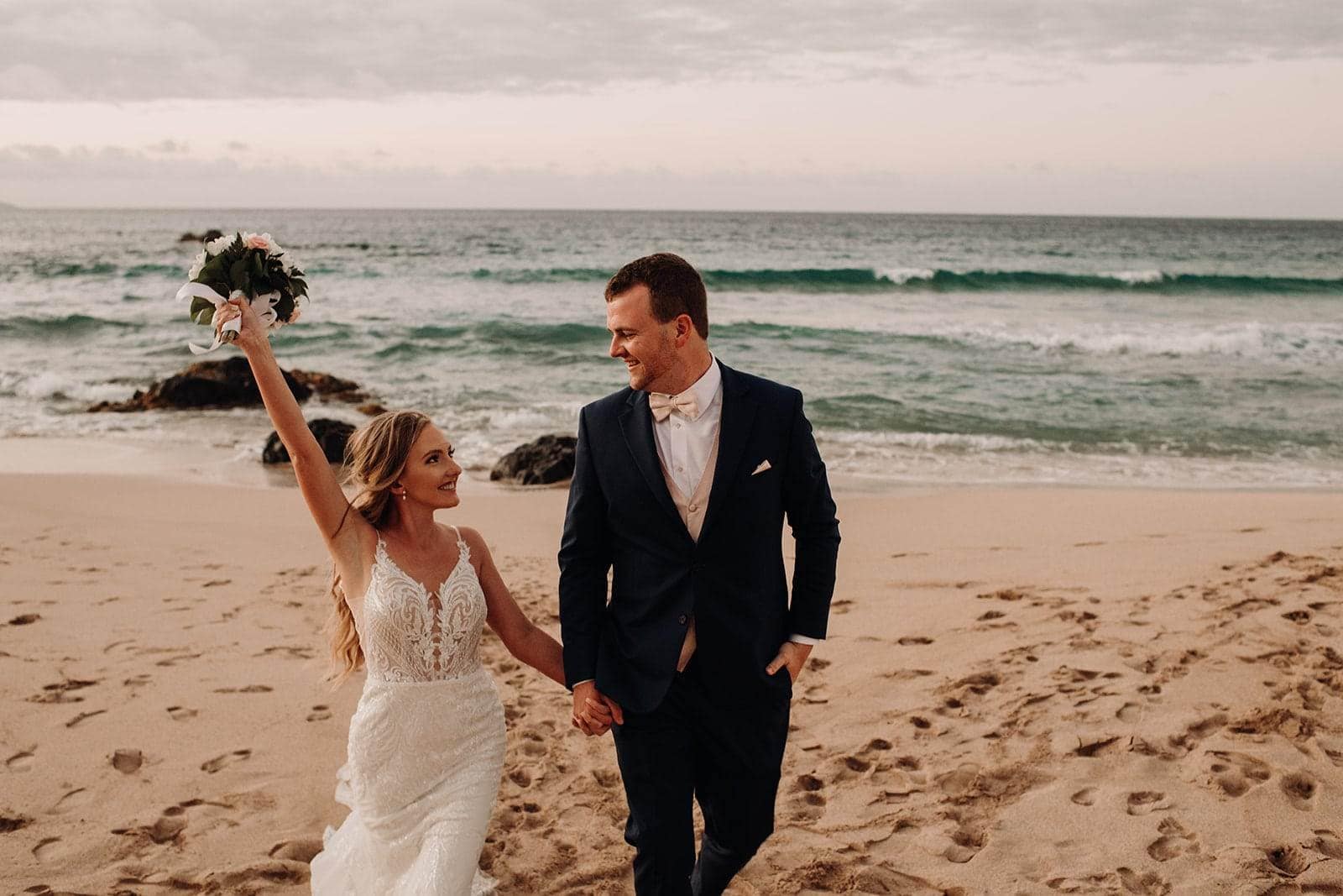 After the vows were exchanged and ceremony concluded we did more photos up on the cliffs and went down to the beach to watch the sunset and do more photos barefoot on the sand.